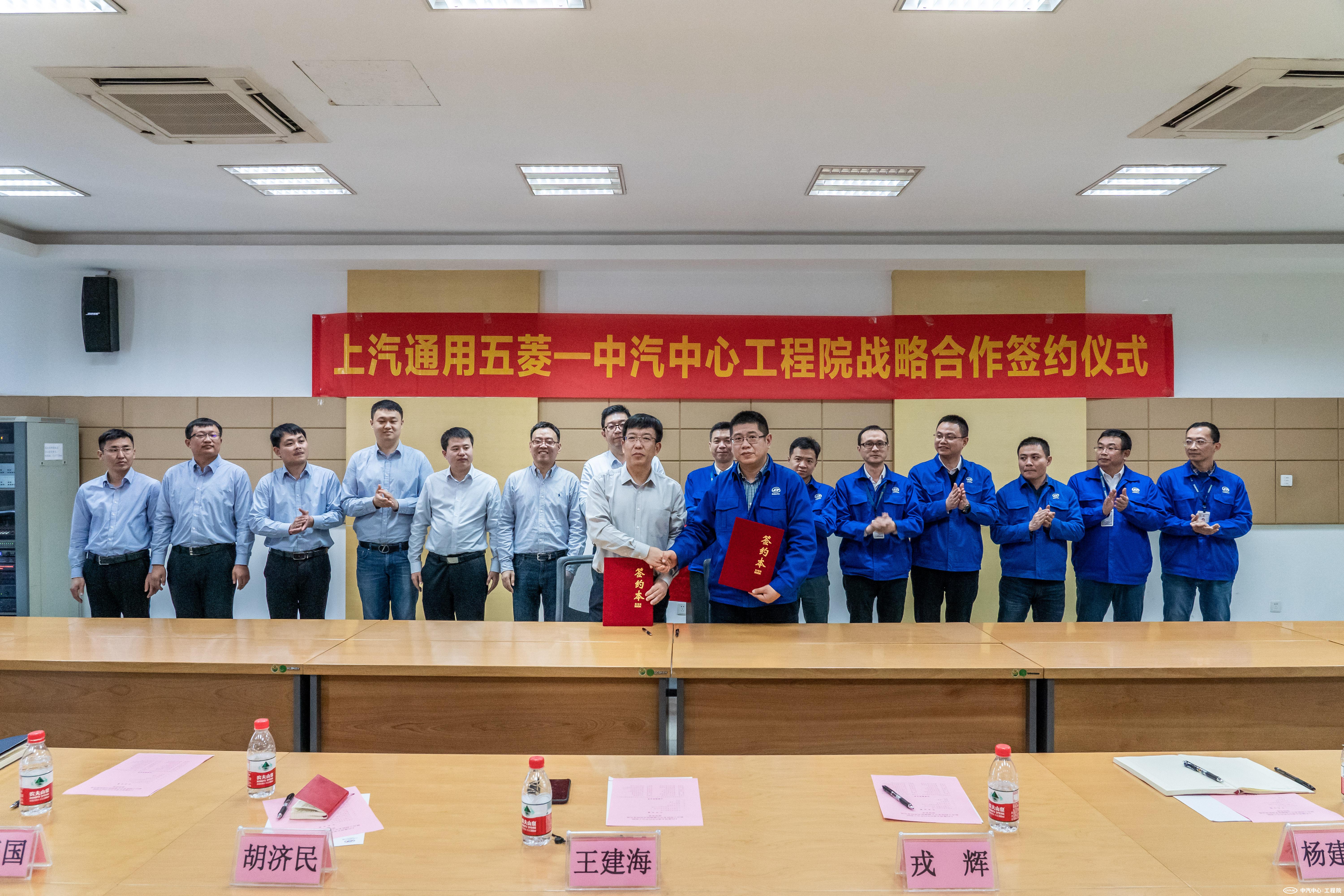 最后,在雙方團隊的共同見(jiàn)證下,王建海、呂俊成分別代表中汽中心工程院和上汽通用五菱簽署戰略合作意向書(shū),共同揭牌成立“聯(lián)合工程技術(shù)中心”。