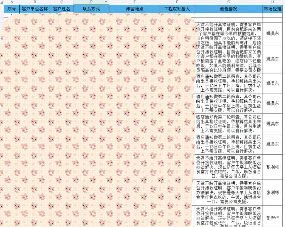 “于公于私,于情于理,也不能讓人家在天津餓肚子。”工程院市場(chǎng)經(jīng)理張利彬在和自己所負責的客戶(hù)溝通之后,在群里發(fā)了這句話(huà),當即一呼百應。“我的客戶(hù)我來(lái)護”!疫情之下,首先要保證的就是大家的健康問(wèn)題。此前,工程院迅速刊發(fā)在疫情期間的“致客戶(hù)書(shū)”,隨后梳理了滯留客戶(hù)的相關(guān)信息并立即開(kāi)展點(diǎn)對點(diǎn)對接工作,一一詢(xún)問(wèn)他們的狀況,聯(lián)動(dòng)中心后勤保障部,在疫情防控允許的范圍內解決客戶(hù)的需要。