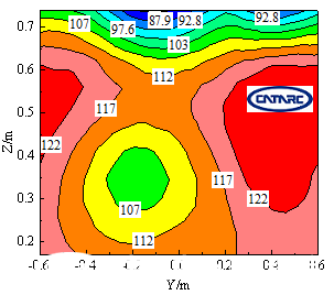 圖1 距環(huán)境風(fēng)洞噴口和環(huán)境艙風(fēng)機出口1m處風(fēng)速分布(目標風(fēng)速120km/h)