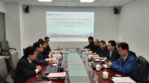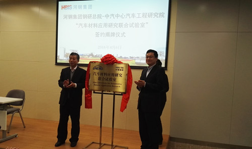 2016年4月6日,中國汽車(chē)技術(shù)研究中心汽車(chē)工程研究院(以下簡(jiǎn)稱(chēng)“中汽中心工程院”)與河鋼集團鋼鐵研究總院(以下簡(jiǎn)稱(chēng)“河鋼鋼研總院”)成立“汽車(chē)材料應用研究聯(lián)合試驗室”簽約和揭牌儀式在河鋼集團總部會(huì )議室舉行。參加此次儀式領(lǐng)導有河鋼集團副總經(jīng)理王新東、河鋼鋼研總院院長(cháng)李建新、河鋼鋼研總院副院長(cháng)吝章國、副院長(cháng)常金寶和河鋼集團唐鋼技術(shù)中心、河鋼集團邯鋼技術(shù)中心相關(guān)領(lǐng)導,以及中汽中心工程院高繼東院長(cháng)、謝書(shū)港主任、胡濟民主任、孟憲明博士。
