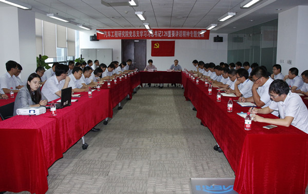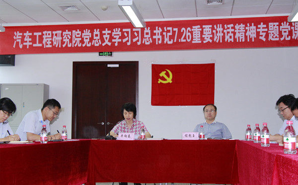 在中國共產(chǎn)黨第十九次全國代表大會(huì )即將召開(kāi)之際,2017年9月7日,中汽中心黨委副書(shū)記牛向春圍繞“貫徹傳達習近平總書(shū)記‘7·26’重要講話(huà)精神”和“解讀《關(guān)于新形勢下黨內政治生活的若干準則》”兩大主題為汽車(chē)工程研究院黨總支全體黨員講了一次精彩的黨課。黨課會(huì )議由工程院黨總支書(shū)記高繼東同志主持,工程院黨總支56名在津黨員參加了黨課學(xué)習。